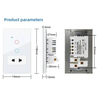 118 Type WiFi Smart Switch & Socket Combination – 1/2 Gang, Tempered Glass, App & Voice Control