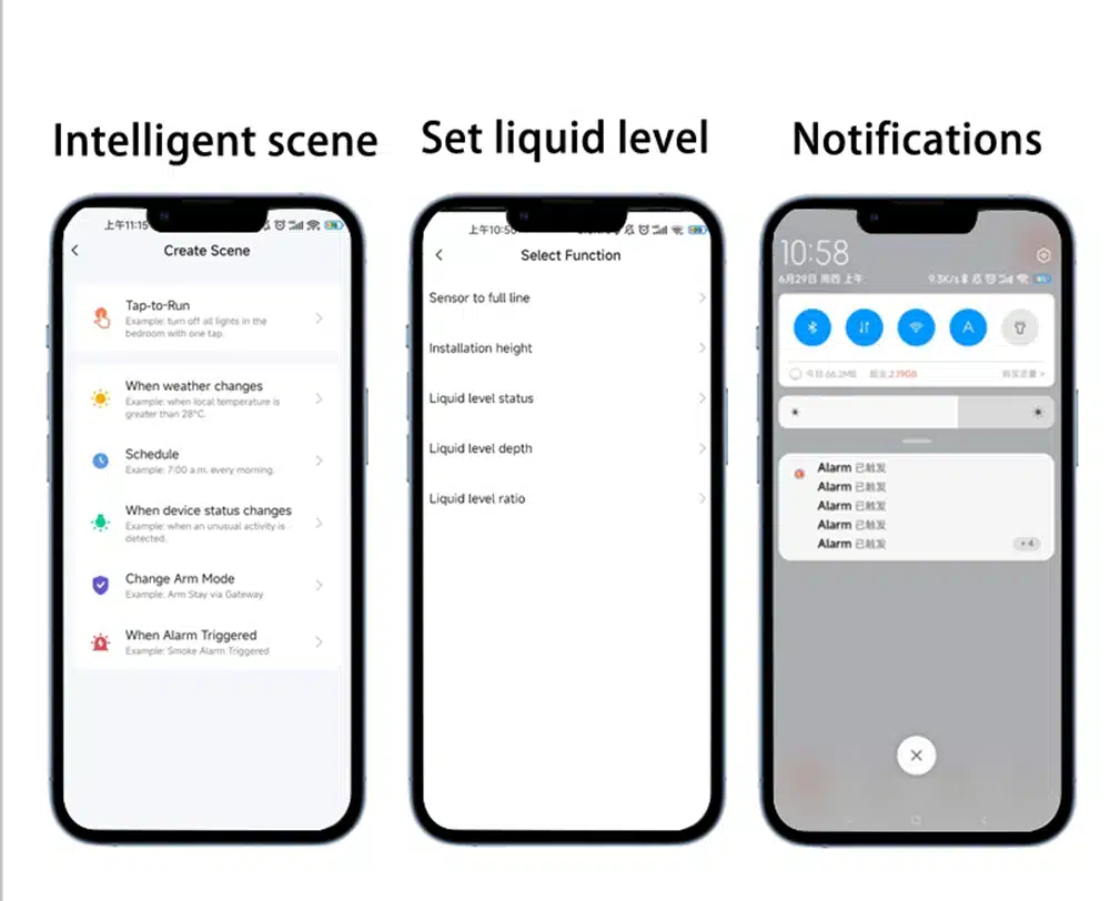 📲 App Monitoring: View real-time tank depth, level ratio, and history on your smartphone