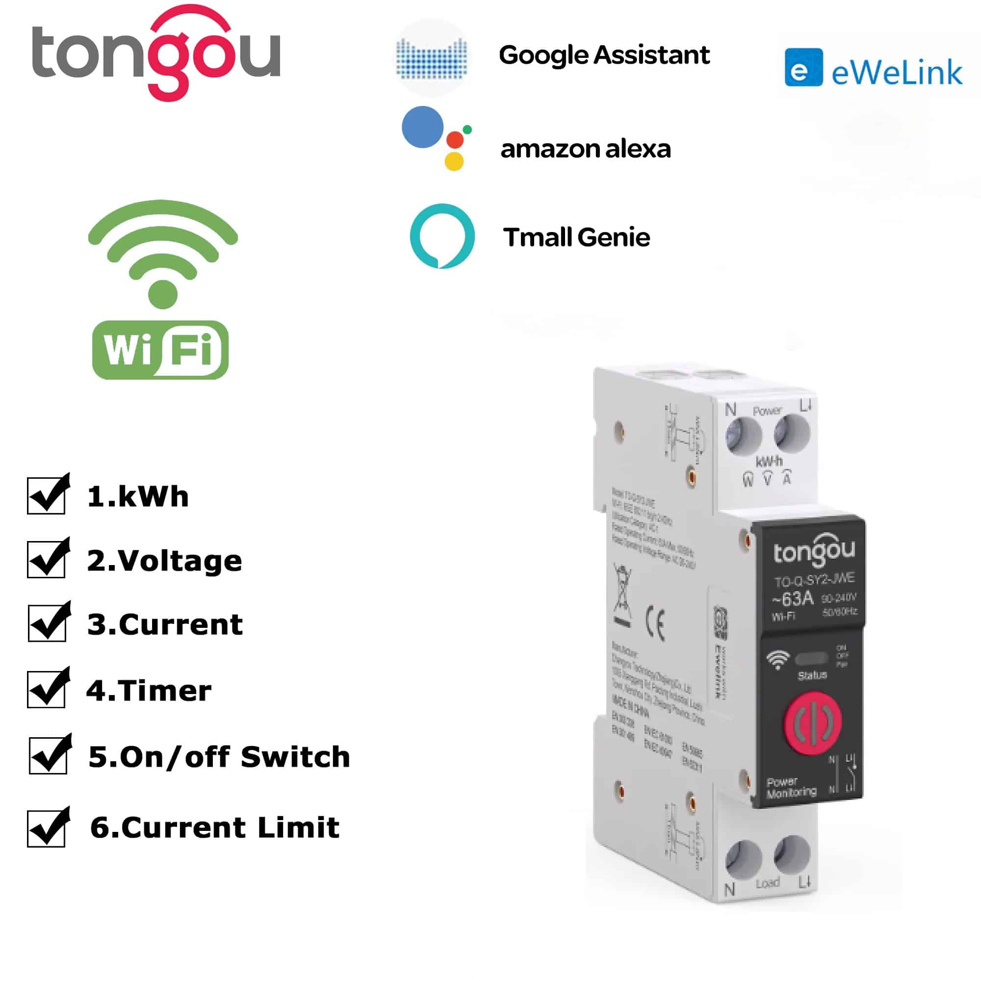 The TONGOU TO-Q-SY2-JWE is a powerful and intelligent eWeLink DIN switch designed for smart electrical distribution. Engineered for DIN rail mounting, it delivers 63A capacity with a compact 1P+N pole design, making it ideal for home, commercial, or industrial automation.