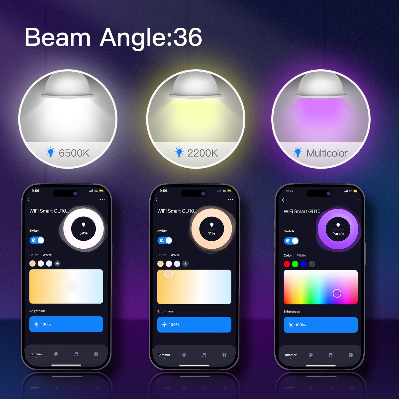 MOES GU10 Smart Sync Full Color LED Dimmable Party Light Bulbs RGBCCT 2200-6500K C+W 5W