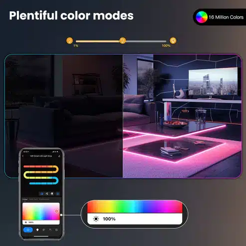 MOES Neon Music LED Smart Light offers 16 million colors, music sync, and smart control via WiFi, Bluetooth, or remote.