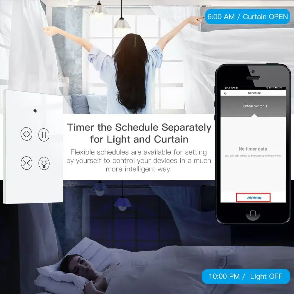 ⏱ Timers & Scheduling – Automate curtains and lights separately.
