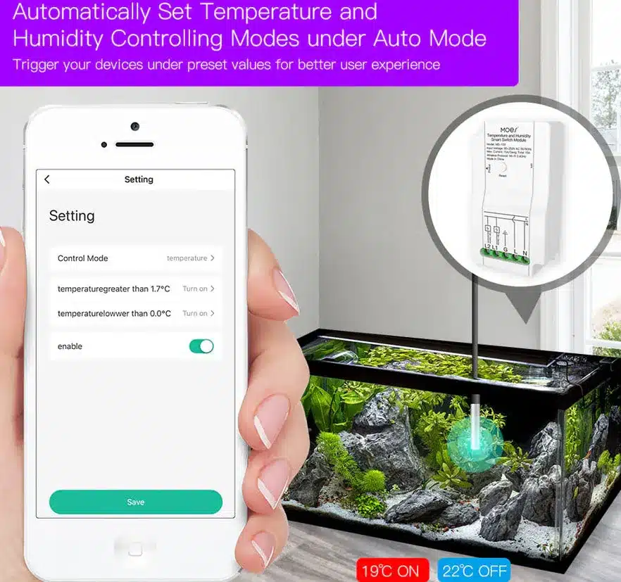 The MOES MS-103 WiFi Smart Switch Module with Dual Relay output intelligently controls temperature and humidity in real time. Compatible with Alexa, Google Home, and Tuya/Smart Life, it supports heating, cooling, humidifying, and dehumidifying modes with precise scheduling, auto/manual operation, and real-time monitoring via app or voice.