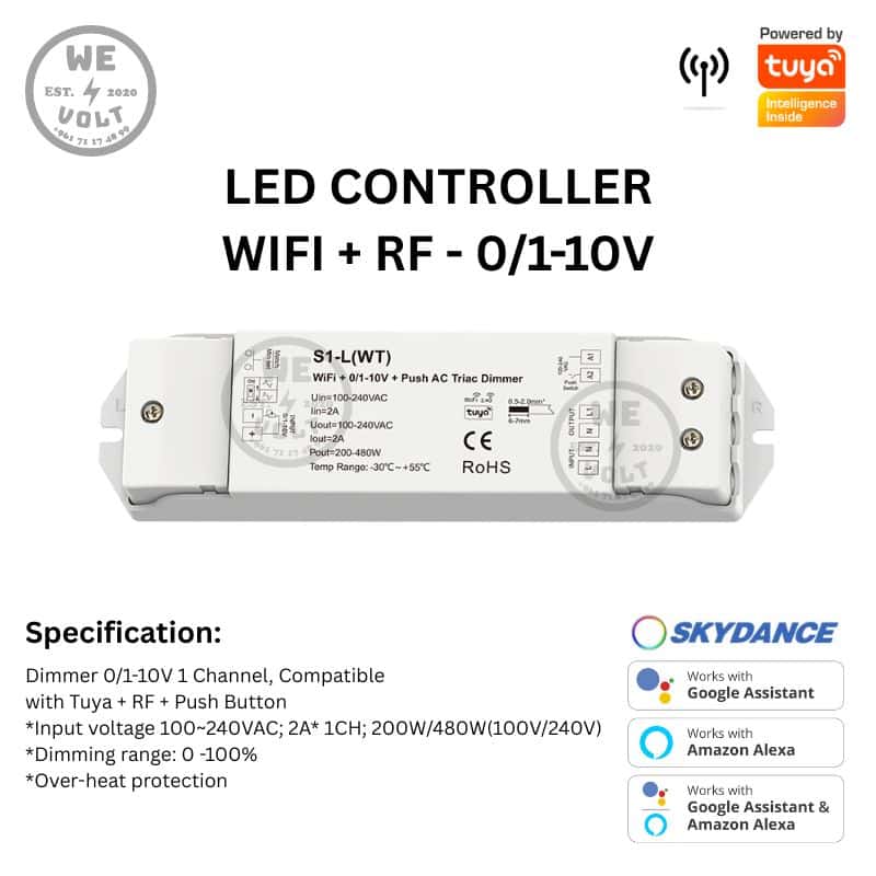 Skydance S1-L(WT) – 0/1-10V Dimmer (Tuya + RF + Push Button, 200W–480W)