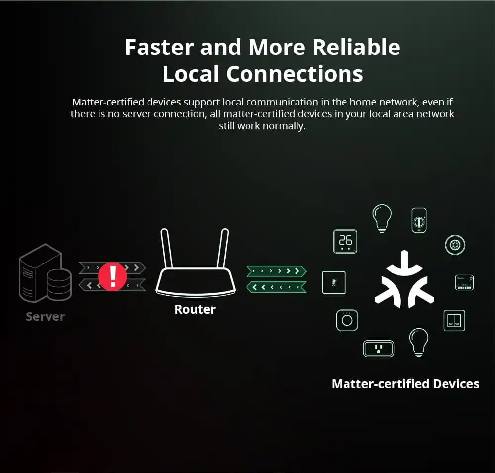 Compact Matter-enabled smart switch compatible with Alexa, Google, and Apple HomeKit.