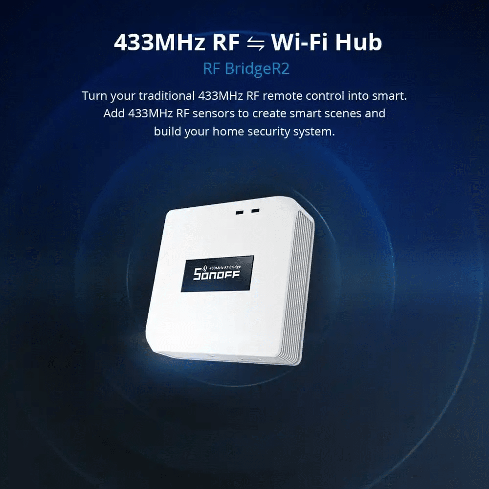 - Compatible with a wide range of RF devices such as RF curtains, RF door locks, RF garage door openers, and more, the SONOFF RF BridgeR2 is the ultimate smart hub for your home.