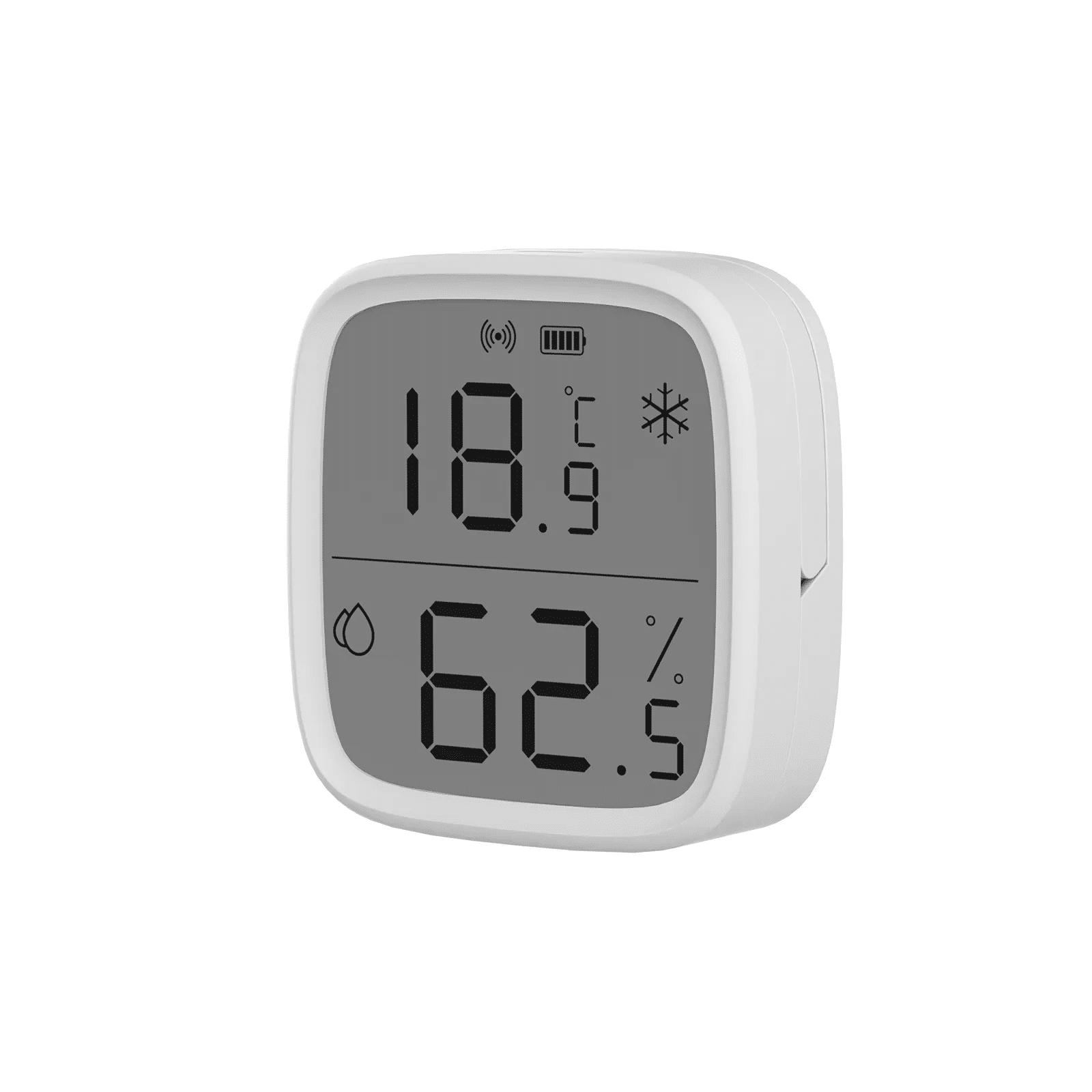 【Large LCD screen display】Use large LCD display to view the real-time values of temperature humidity clearly and dynamically, the intuitive display icons let you check the room conditions and battery status even easier than ever.