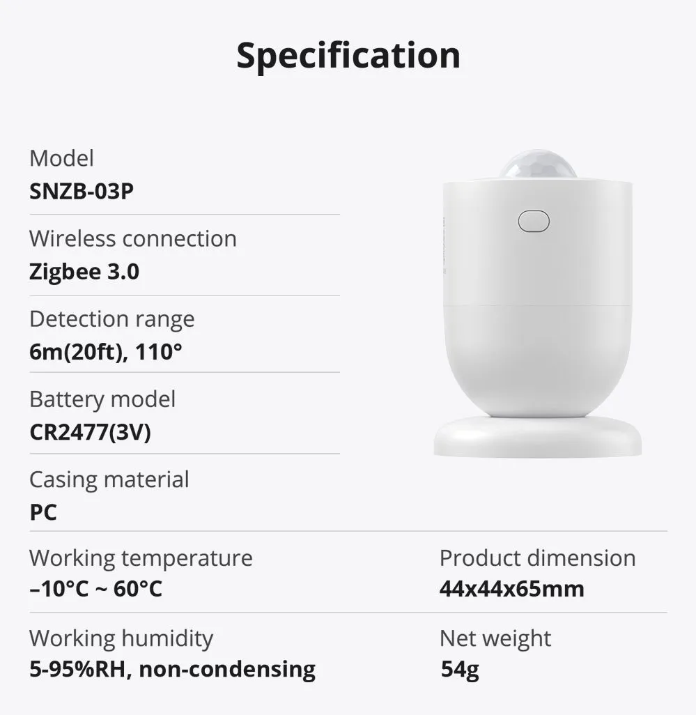 SONOFF Zigbee Motion Sensor SNZB-03P – Smart Home Motion Detection