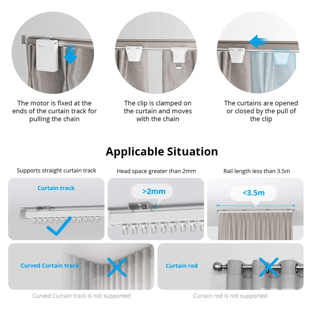 【One device meets different use scenes】Suitable for various family curtains, one device can work for both single-side opening and double-side opening curtains! Save your time thinking about how to make your curtains smart!
