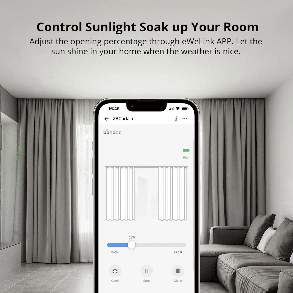 【Multiple Control Options】You can use eWeLink App to control your curtains, schedule a time, set the smart scenes in the APP to interact your curtains with other smart devices, or use remote control(one remote to control multiple curtain motors or multiple remotes to control one curtain motor),voice control is also supported.