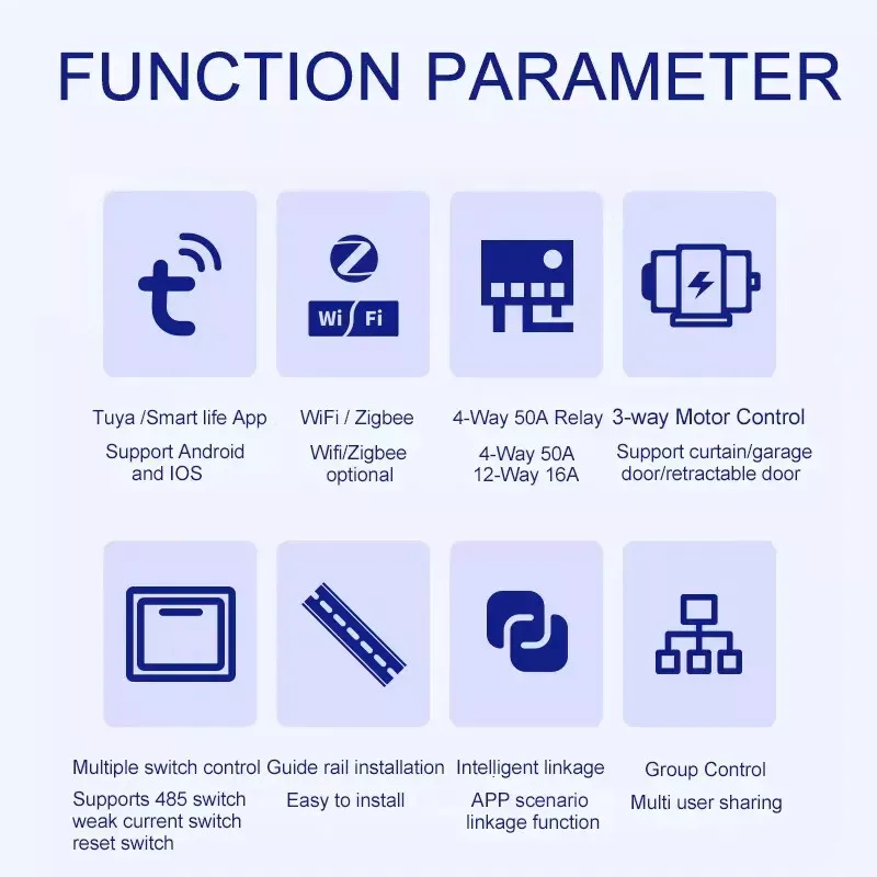 With built-in WiFi connectivity, the controller integrates seamlessly with the Tuya Smart / Smart Life ecosystem, enabling remote operation, automation scenes, scheduling, and multi-user access.